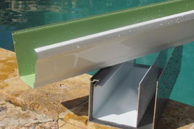 The main difference is that Super Gutters are structural and much heavier gauge aluminum or thicker so they can support the weight and downward forces from the beams of a pool or screen enclosure. They are extruded and not roll form which adds strength. They are also rectangular and not decorative or rounded so they can support the weight of a pool enclosure. They are available in Bronze and White so they match both colors screen enclosures are made. Seamless gutters come in about 18-20 colors and are meant for the areas of the home where there is no screen enclosure. Also, Super Gutters have a Spline groove so the screen mesh can be attached directly to them and Seamless gutters do not have this component.